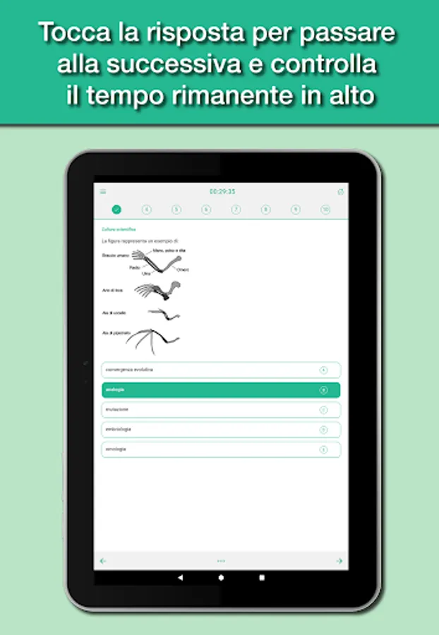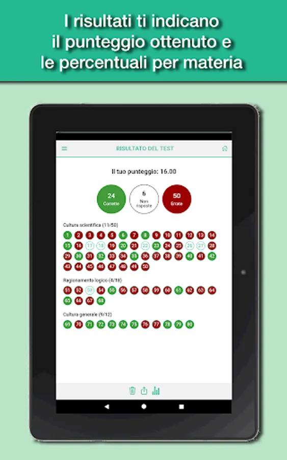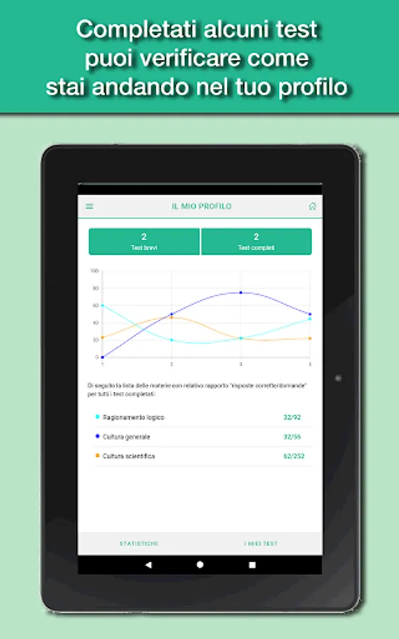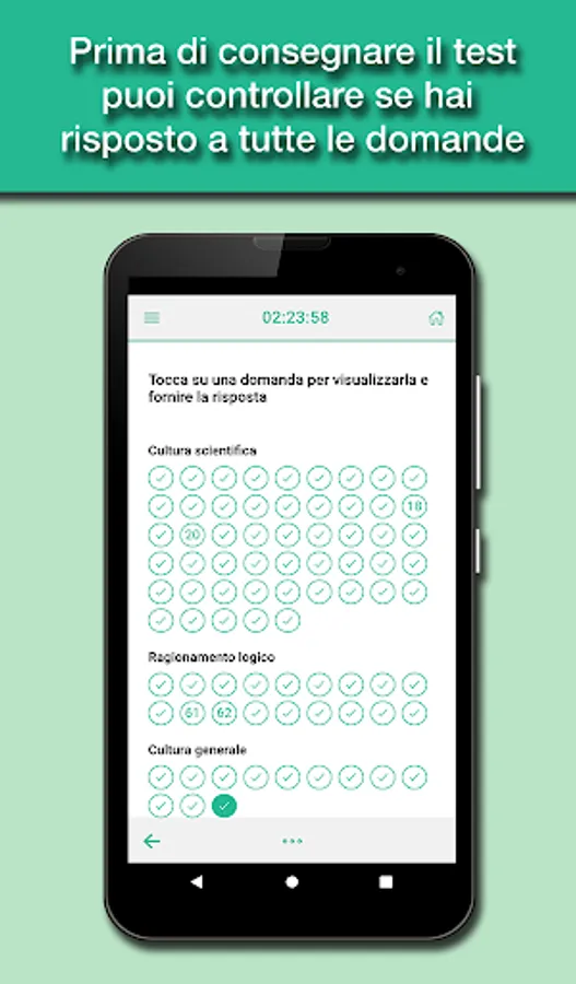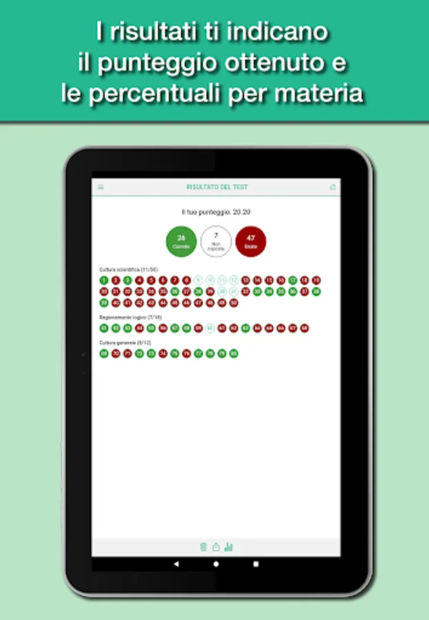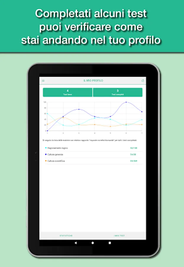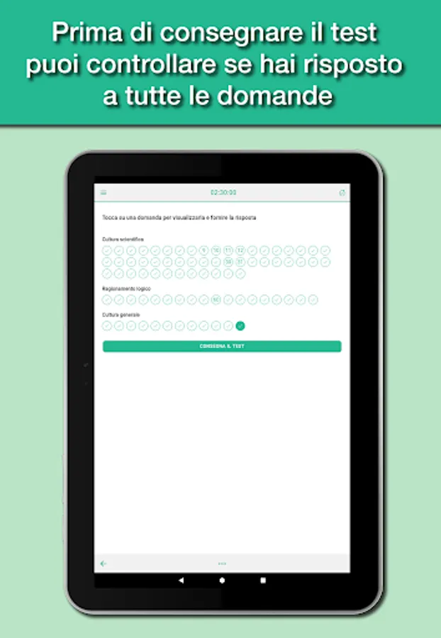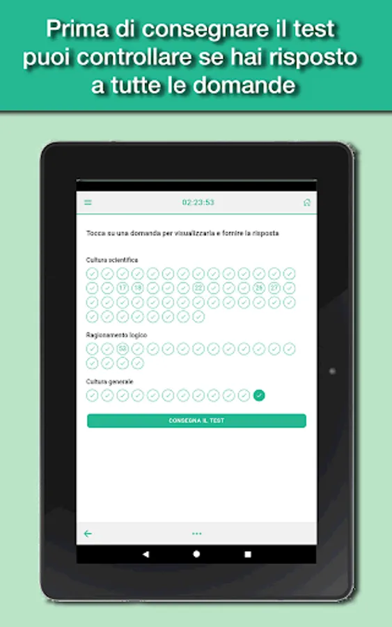 The app is designed to simulate as close as possible the test you actually have to deal with, with all the topics of the test: Scientific Knowledge, Logical Skills, and General Knowledge.