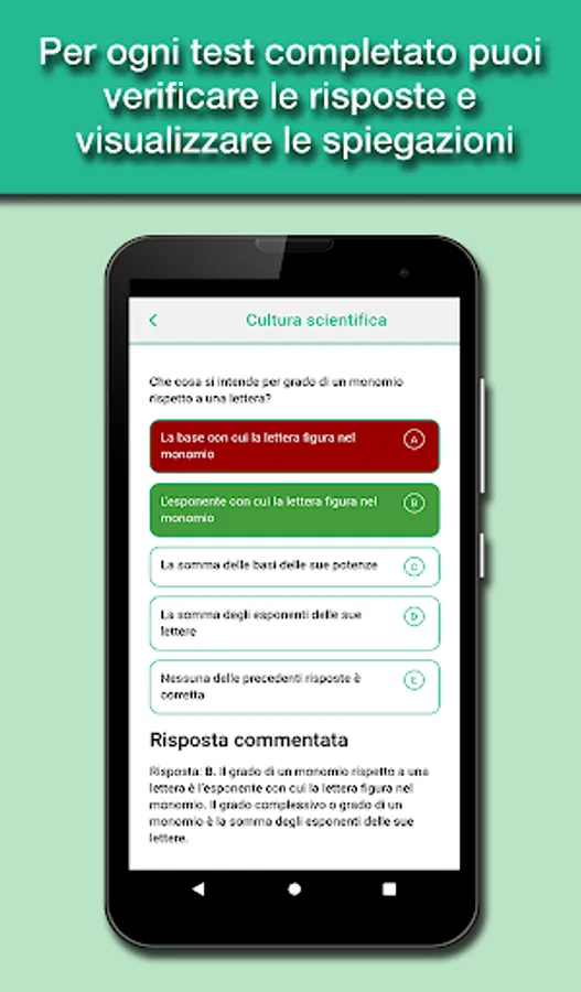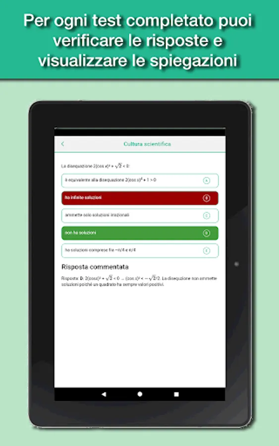 This app is built on a database of 1000 questions with their corresponding annotated solutions, and enables you to generate an unlimited number of different tests and reach a better preparation. After downloading the app, you can simulate a full test of 80 questions, similar to the actual official test, or you can choose to check your preparation in a quicker way by completing short tests with 20 questions, in order to optimize your time. In both cases, you can pause the test and resume it later, you can submit it and check the solutions, or you can abandon it and start a new test.