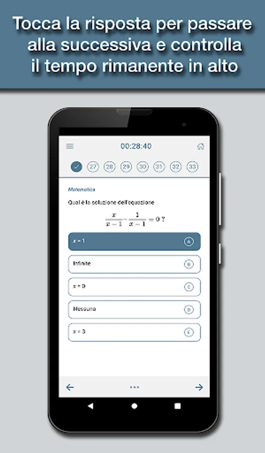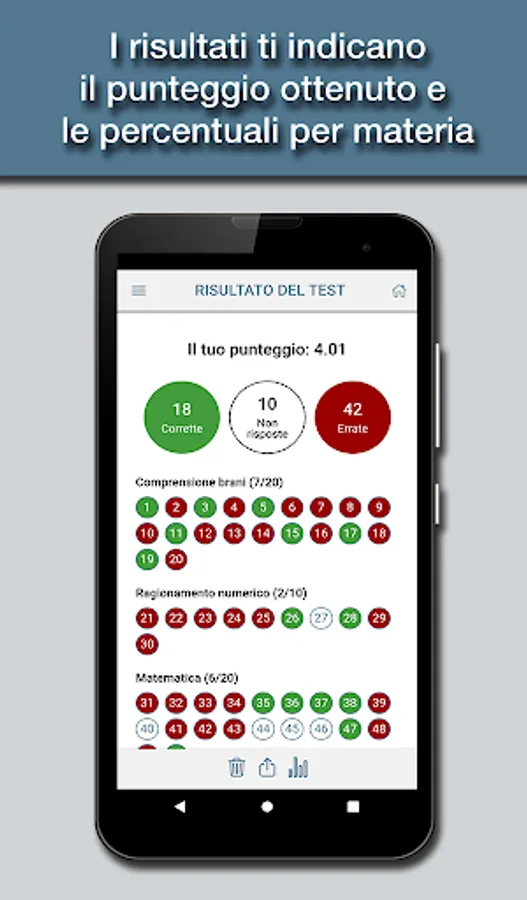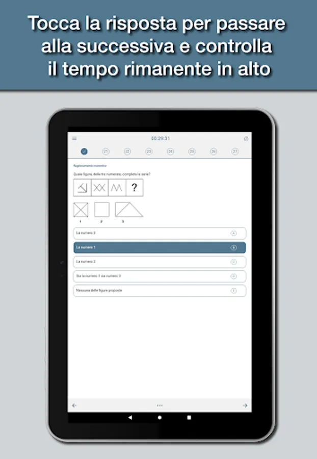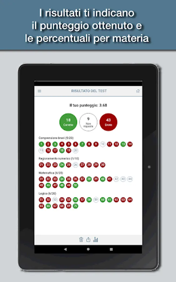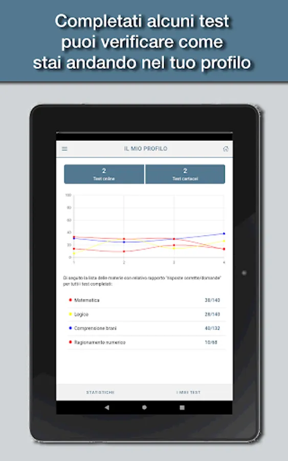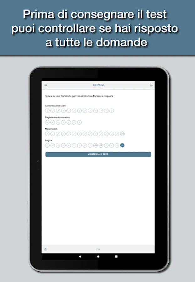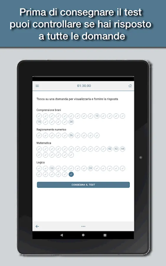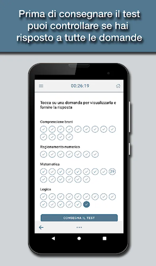 The app is designed to simulate as close as possible the tests you actually have to deal with, with all the topics of the test: logical skills, text comprehension, mathematics, and English.