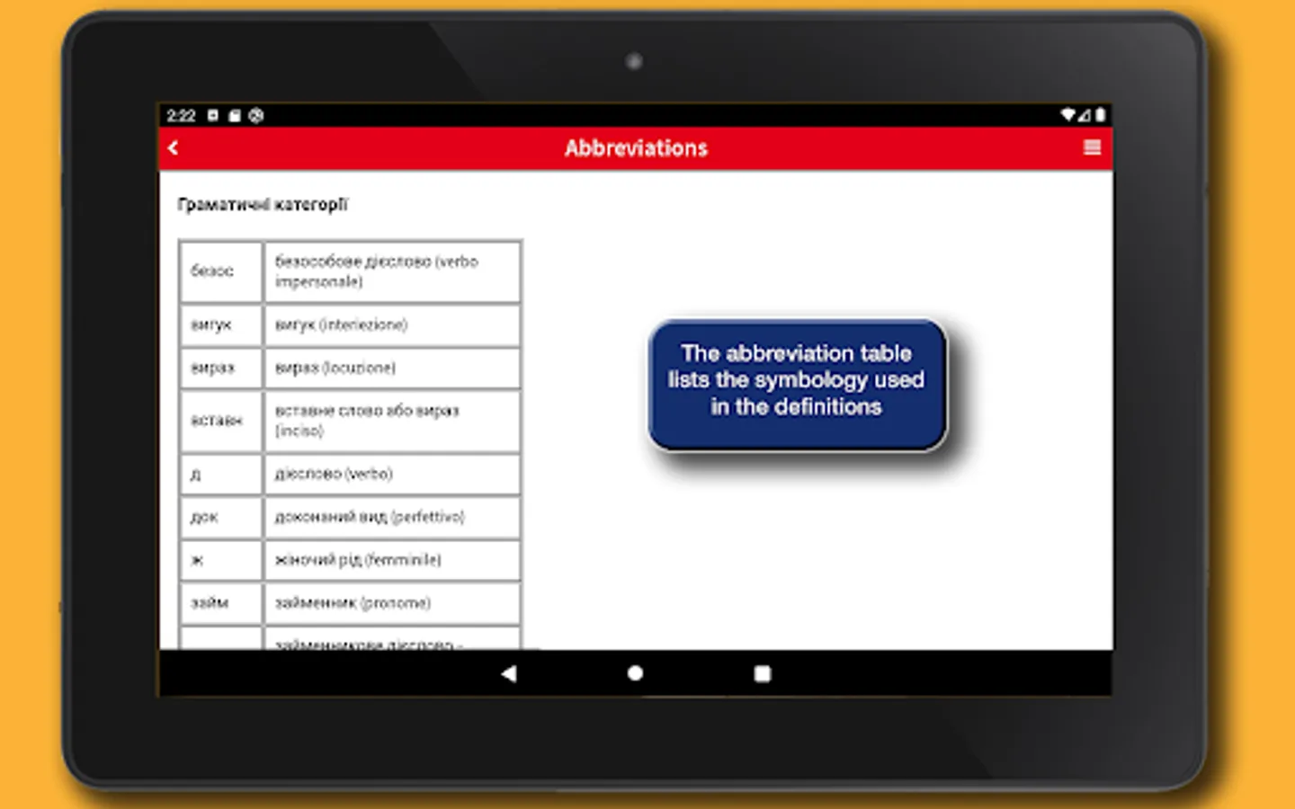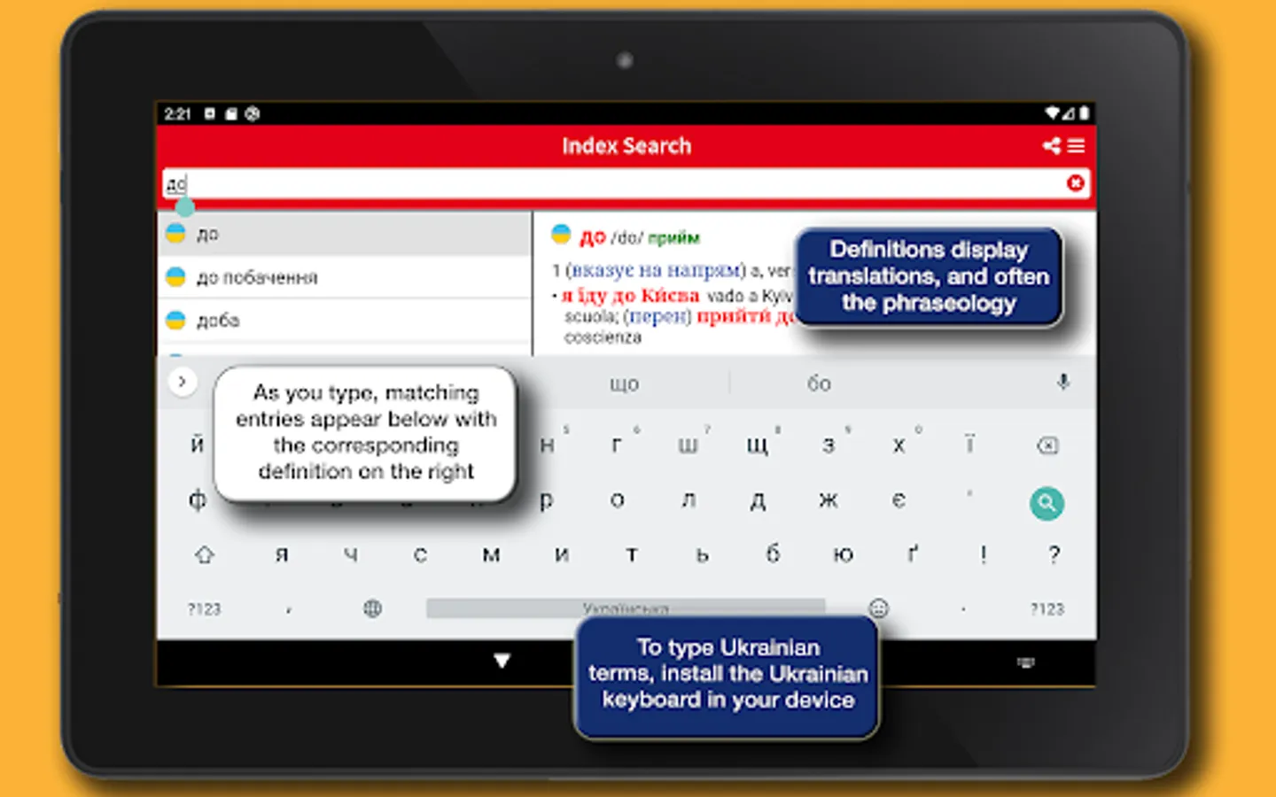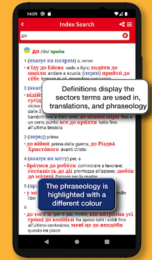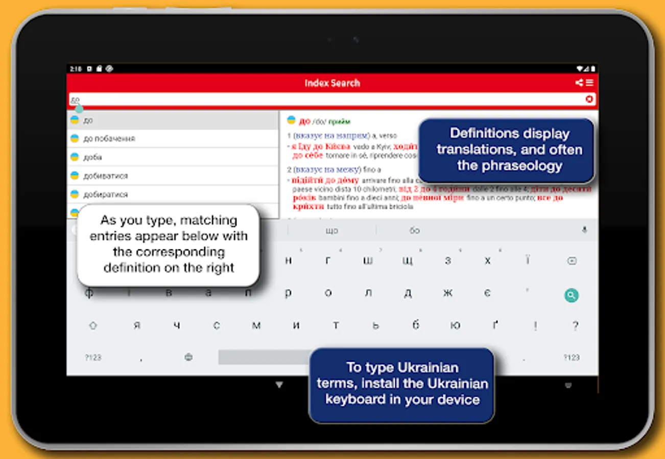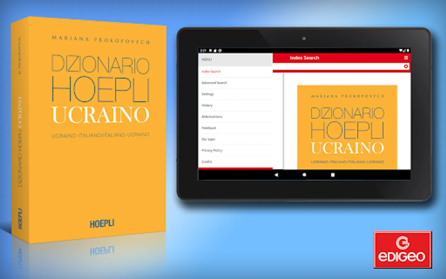 This app provides the Hoepli edition of the Ukrainian-Italian/Italian-Ukrainian Dictionary fromMariana Prokopovych. Complete, up-to-date and easy to consult, the Ukrainian dictionary is the ideal tool for those who want to master the language. It contains the fundamental words and phrases of the Ukrainian language, is updated in accordance with the recent spelling reform and includes over 24,000 headwords, 40,000 meanings, and 40,000 phraseologies, including examples of usage and idioms of both languages. The lemmary is very practical and covers the various language registers, from literary to popular and slang entries, as well as the most important terms from the main specialist fields.