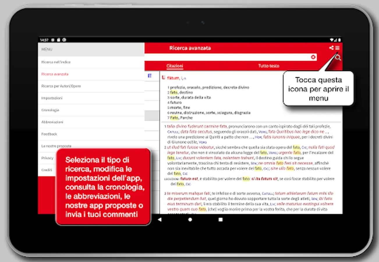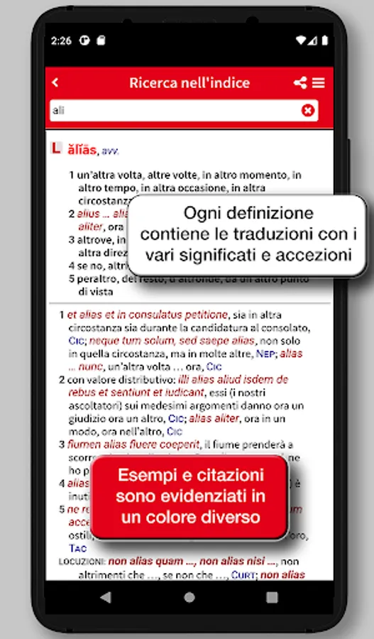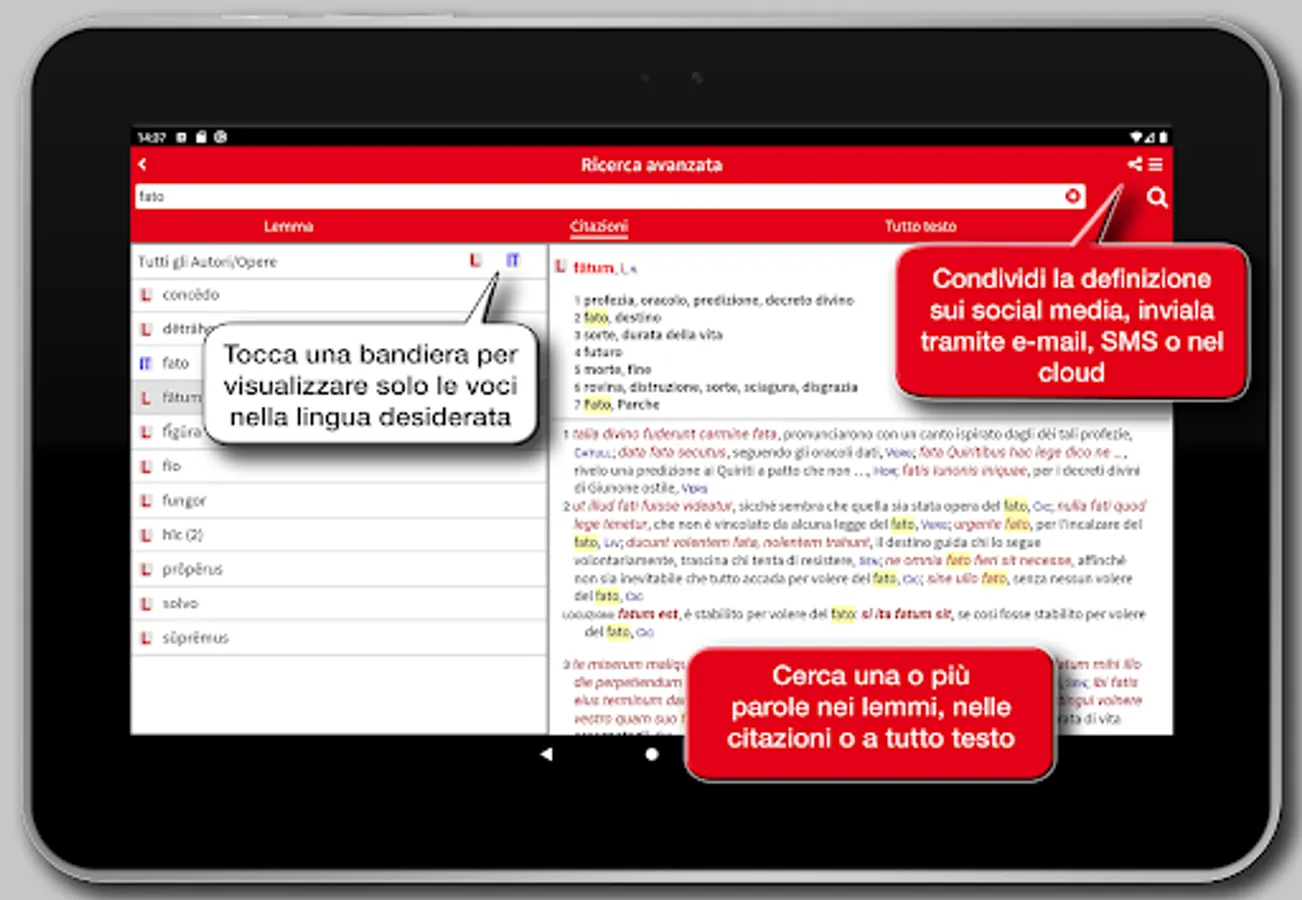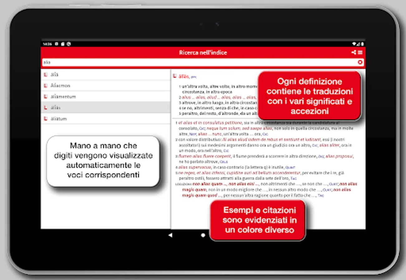 The app Hoepli Latin Dictionary is the result of a ten-year team work by a group of authors who intended to put together the scientific skills of university research with the teaching experience to provide a reference work really designed for the current school.