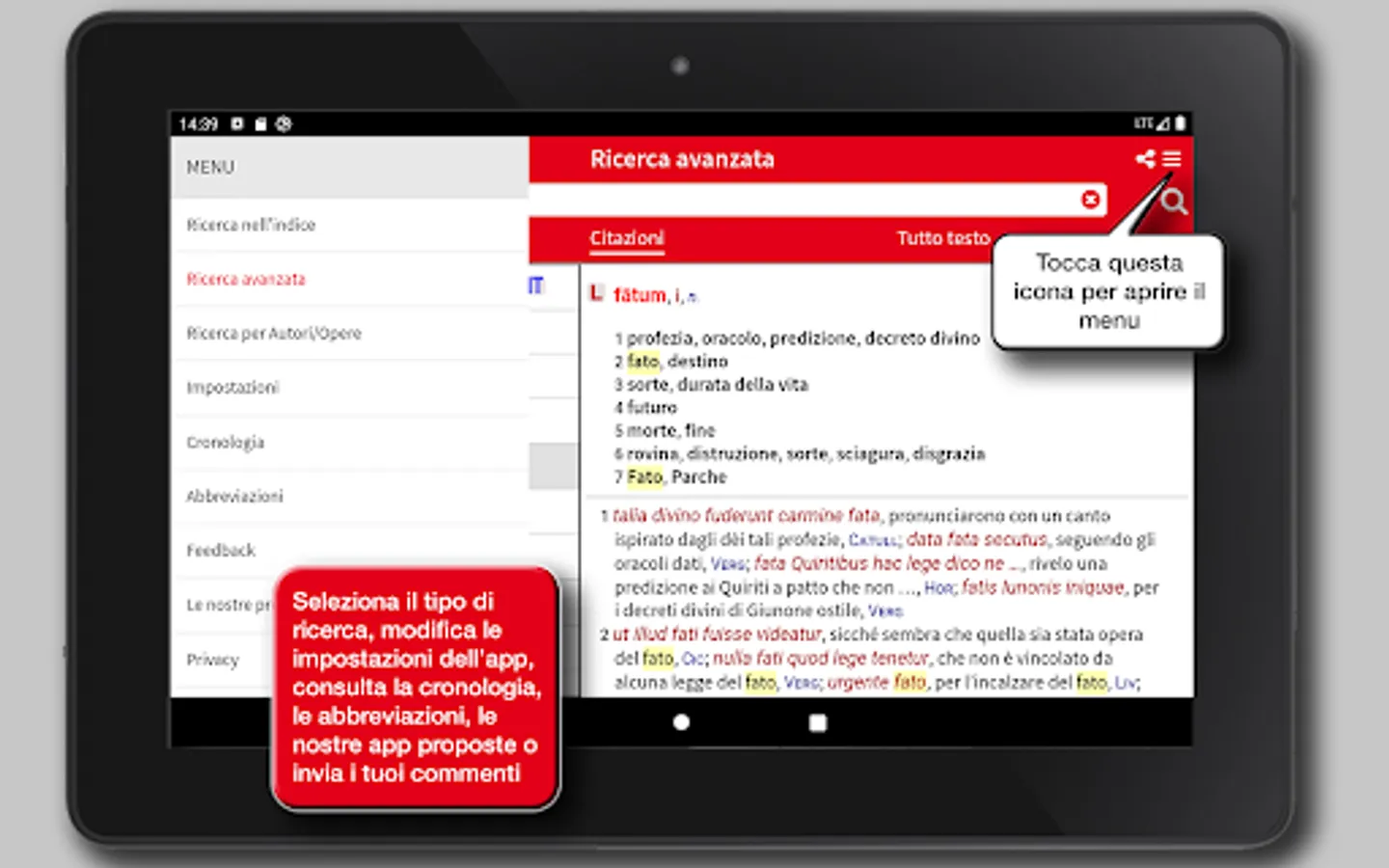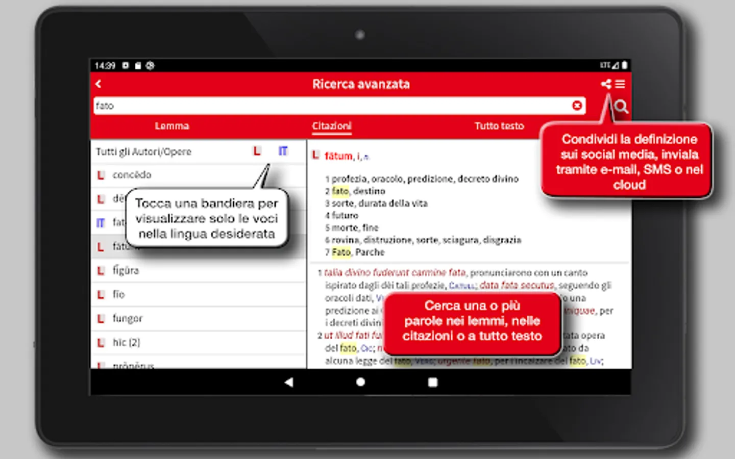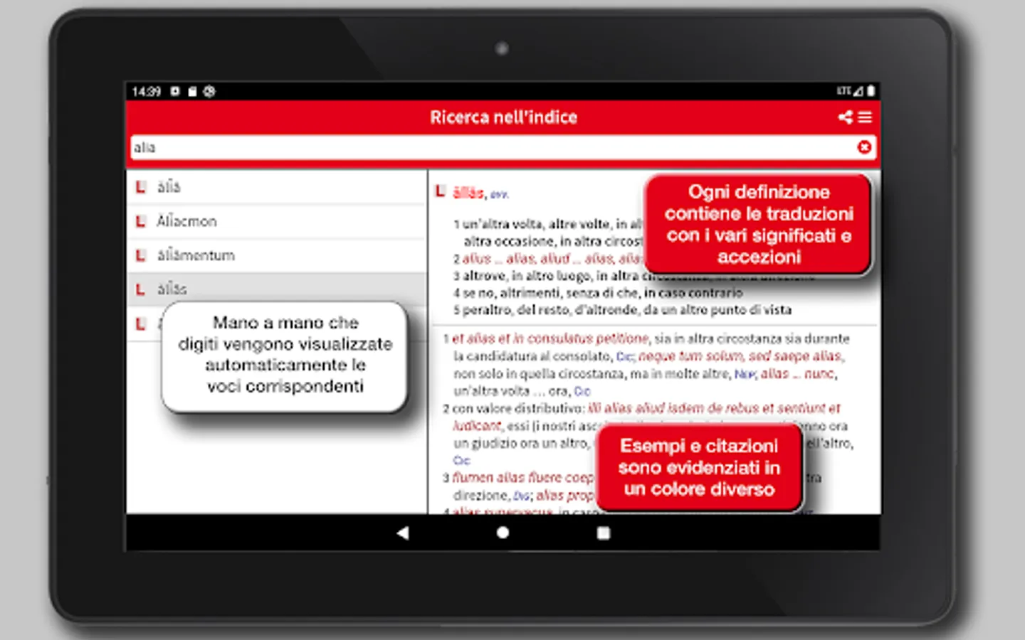 The app Hoepli Latin Dictionary is the result of a ten-year team work by a group of authors who intended to put together the scientific skills of university research with the teaching experience to provide a reference work really designed for the current school.