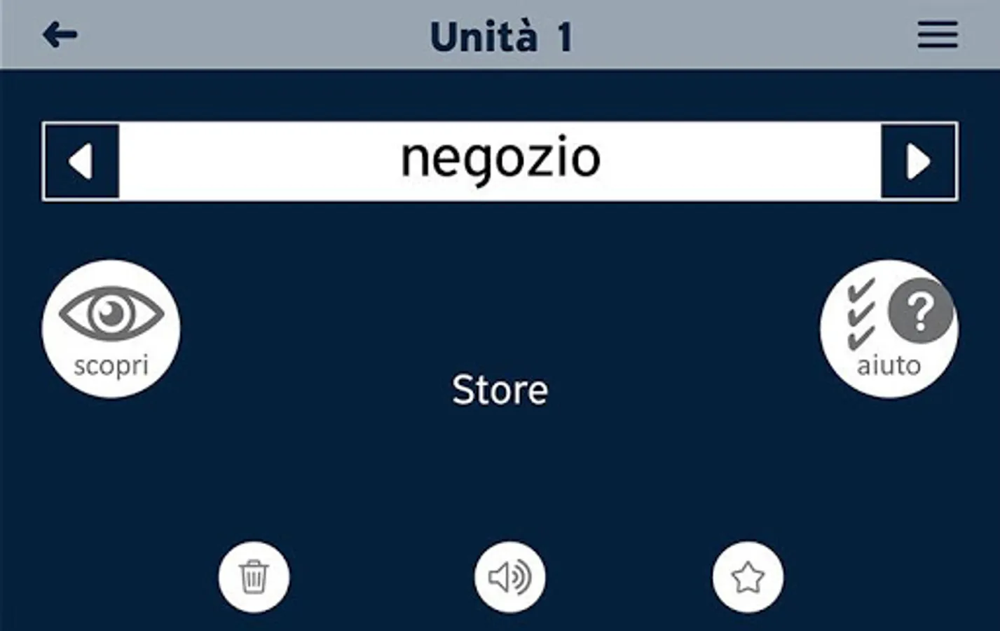 Enter the app and select a specific unit and/or section. Words will be presented randomly: you can either view the immediate translation or challenge yourself by choosing the correct translation between 3 possible options!You can also look up a specific word from the complete list in the main menu (Show all).
