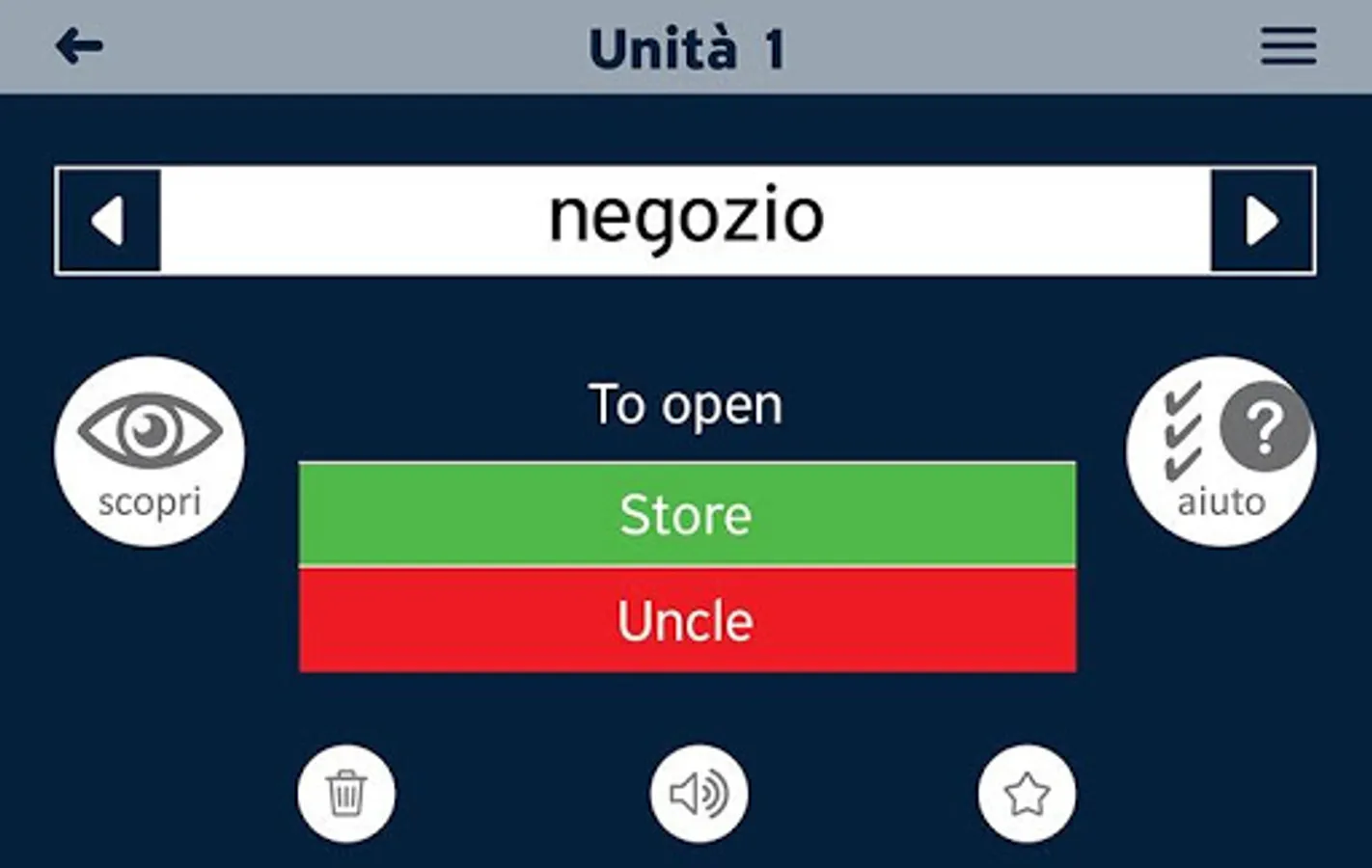 The app Glossario interattivo - L’ italiano all’università 1 is ideal for students who want to exercise their knowledge in an interactive way and for teachers who want to add a playful element to their lessons.