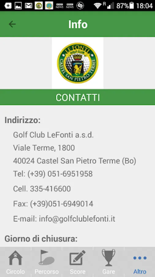 Application for members of Golf Club Le Fonti and the regulars of the club.