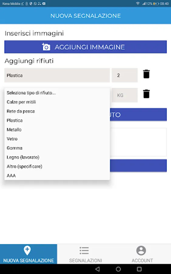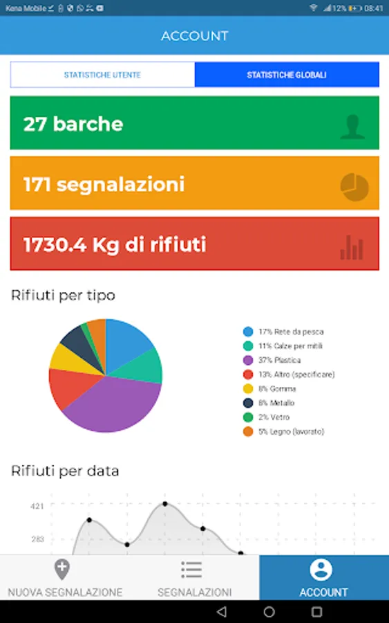 The APP allows the fisherman to enter, at the end or during the fishing day, the type (plastic, glass, rubber, etc. ...), the weight and a photograph of the marine litter caught.