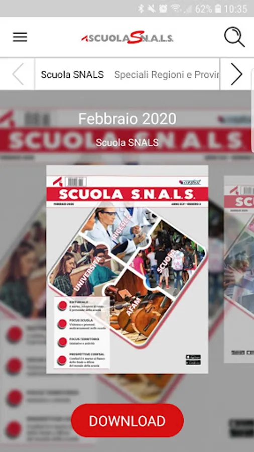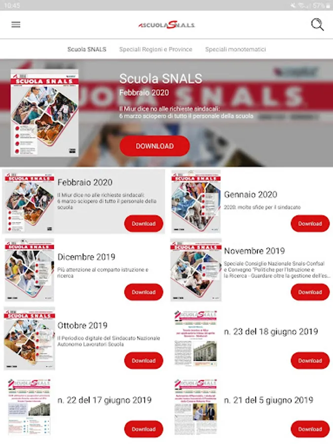 The editorial plan of the weekly School SNALS includes 52 numbers that gather information related to policy, trade union activity, design, culture, carried out by SNALS-CONFSAL, contractual issues, parliamentary activity, the regulations, the reforms, as well as the specific territorial issues.