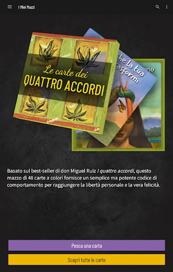 Le Carte di Ruiz is the app that collects all the published papers of Don Miguel Ruiz and contains the profound and precious teachings transmitted in his books: