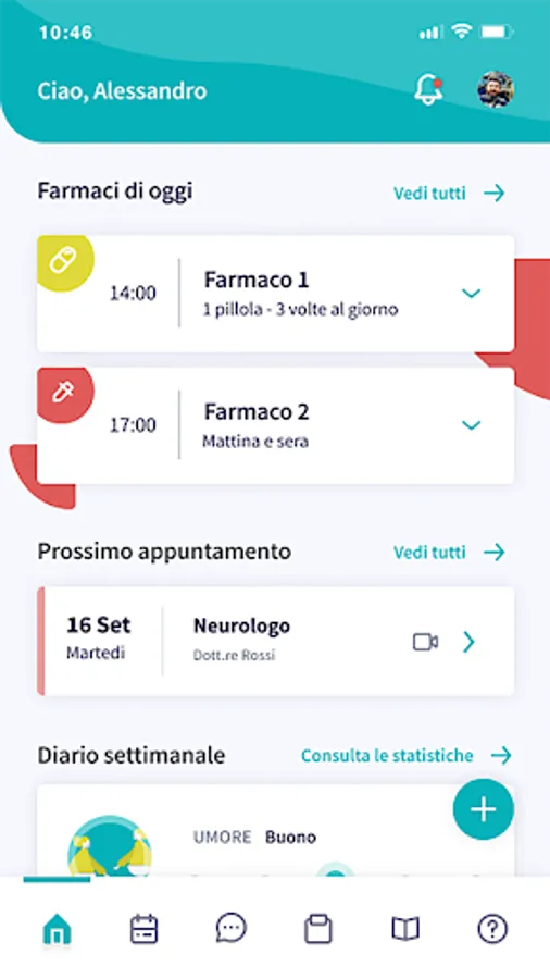 • FAMILIES AND CAREGIVERS: medical records, appointment management, therapy reminder, activity and mood diary, messaging