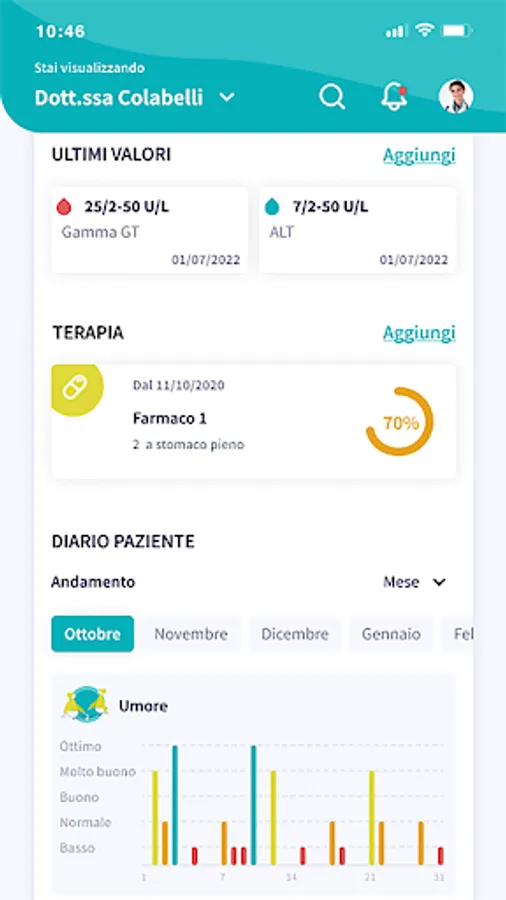 • PATIENTS: medical records, appointment management, therapy reminder, activity and mood diary, messaging