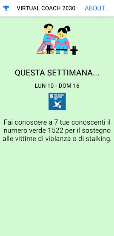 Virtual Coach 2030 is an app that through weekly challenges teaches how to live sustainably according to the dictates of the 2030 Agenda. The app was developed by the students of the I.I.S. "Casagrande-Cesi" of Terni as part of the Terni Festival 2022/23.