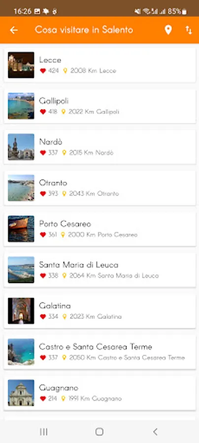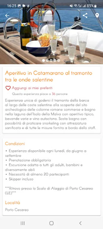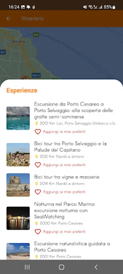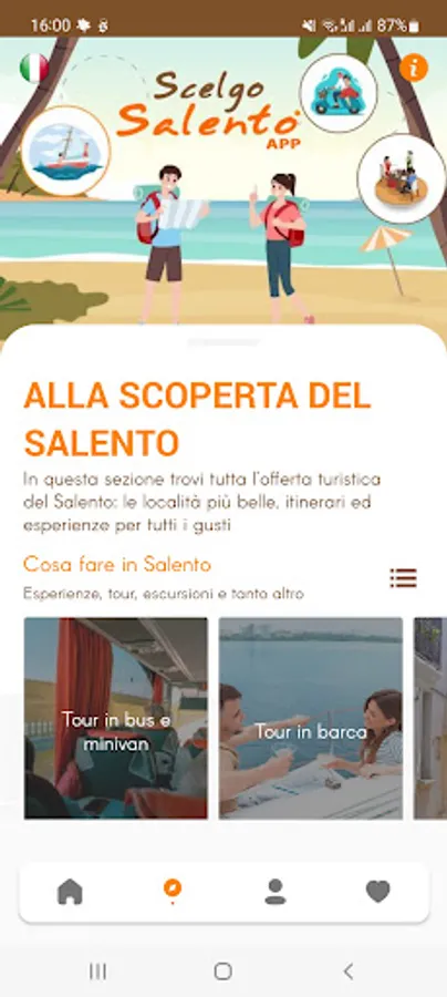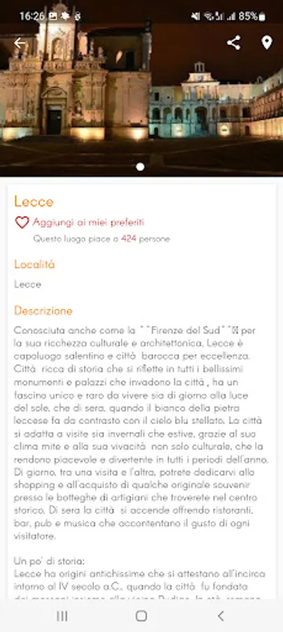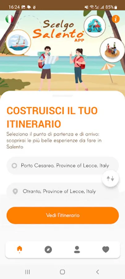 I choose Salento App offers hundreds of information sheets containing the entire tourist offer of Salento, with descriptions, photos, geolocation, curiosities and advice. Each card can be added to your personalized itinerary by clicking on the heart and for each card it is indicated how many users have chosen that place or that activity planning their holiday in Salento.