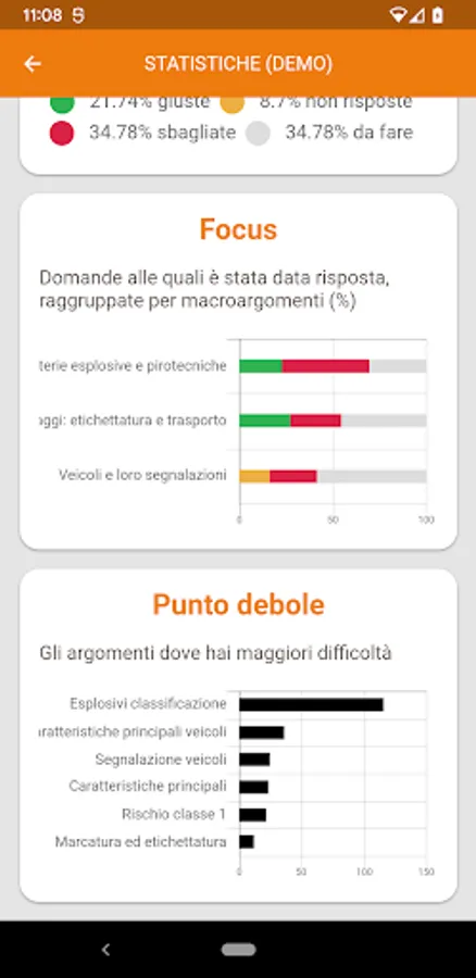 - Weak point: these are the questions you made wrong, and which are re-proposed to you for a review of the errors
