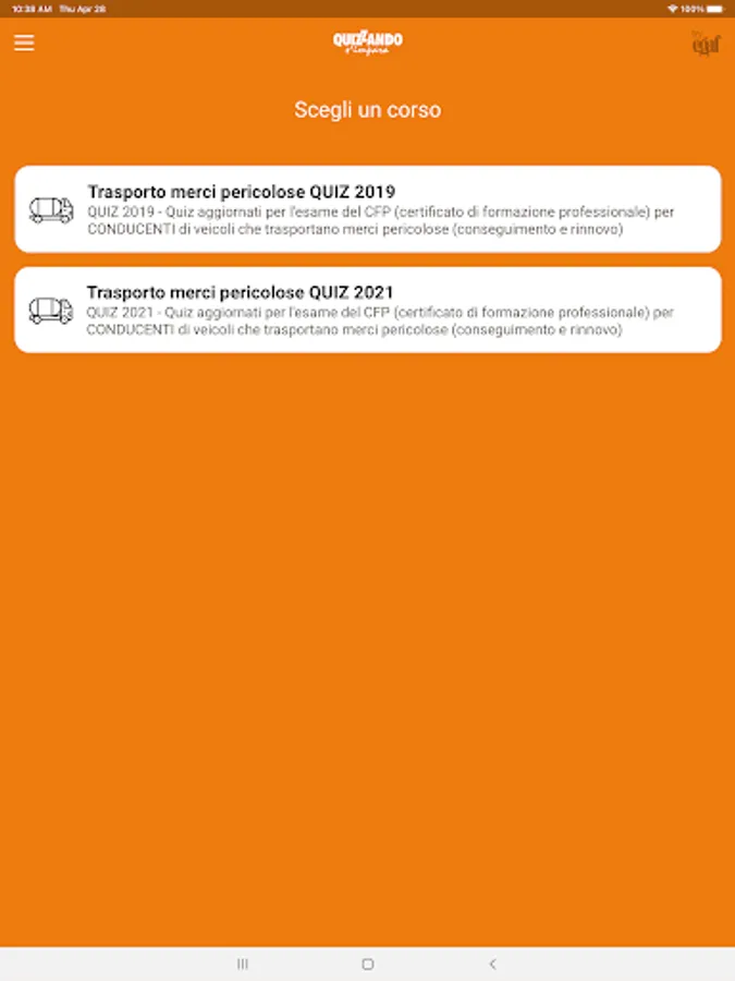 Quiz CFP ADR is the "ADR license" quiz app developed and constantly maintained by EGAF (leader in the road traffic, motorization and transport sector).