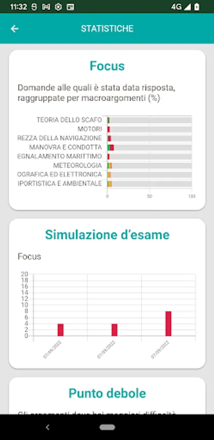 - Weak point: these are the questions you made wrong, and which are re-proposed to you for a review of the errors