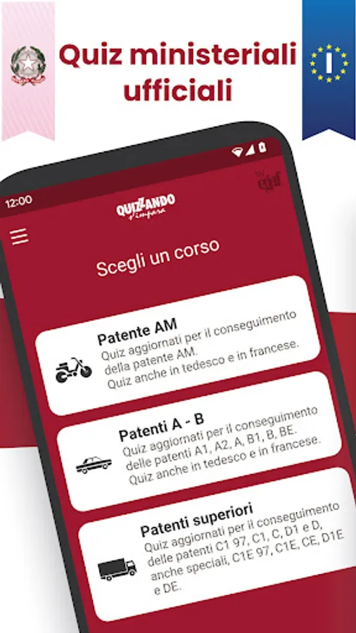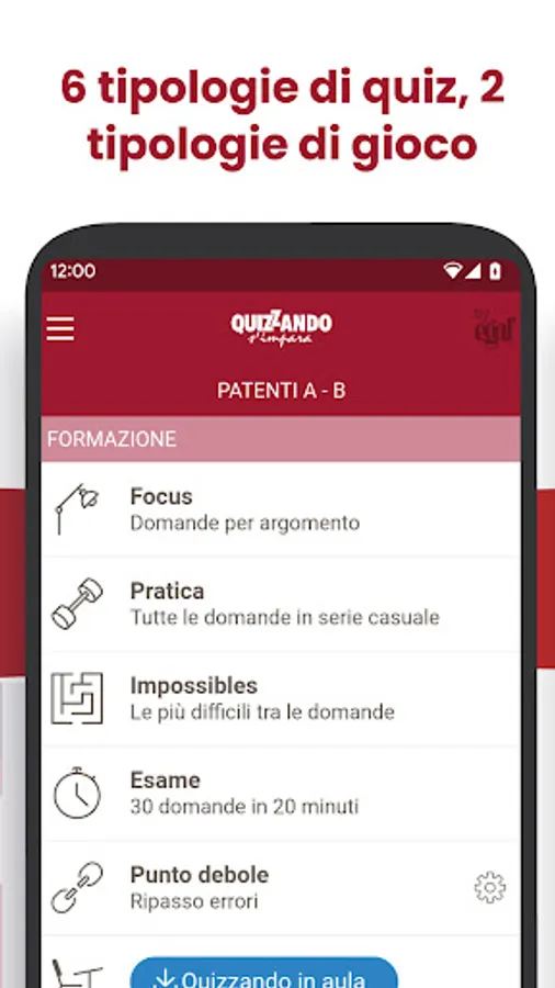 Quiz Patente is the app for driving license quizzes developed and constantly maintained by EGAF (leading information company in the road traffic sector).