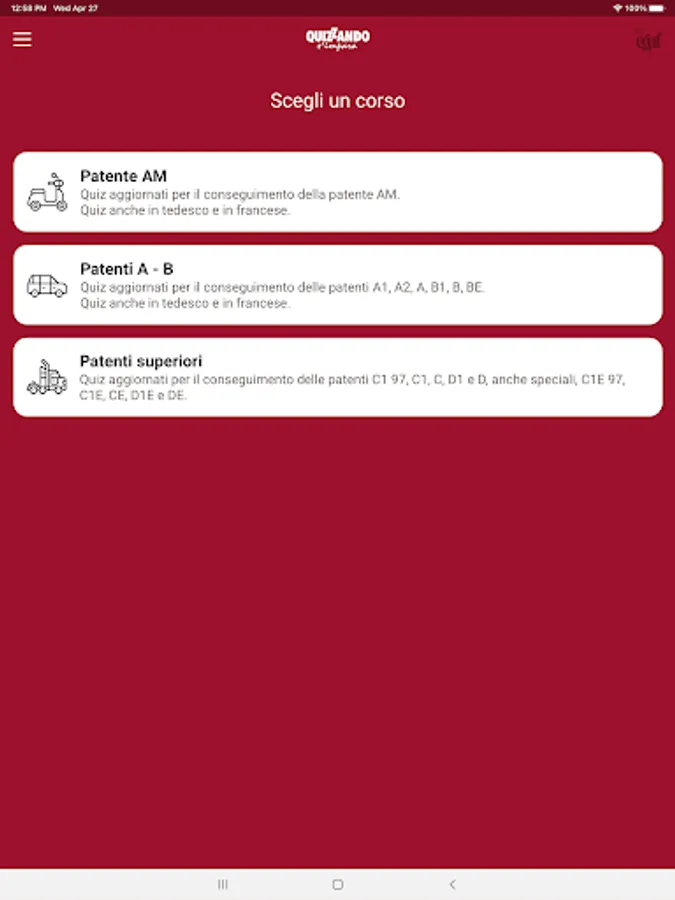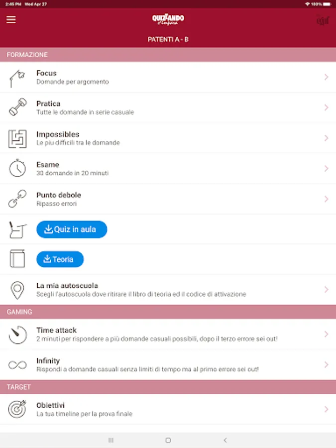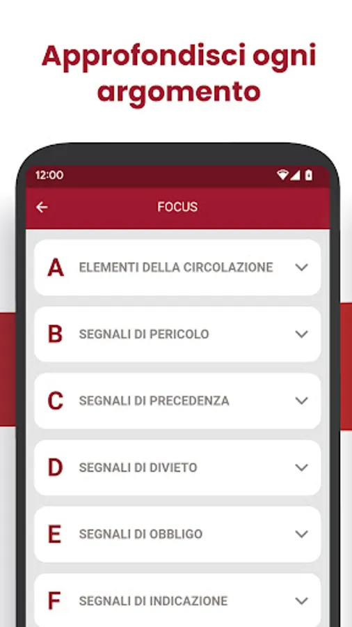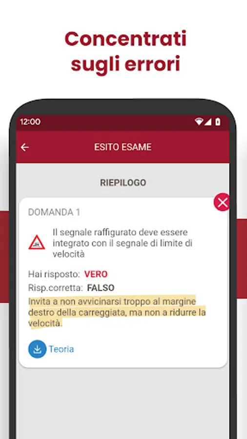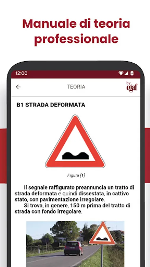 The app makes use of the support of real theory texts from the "Safe Driving" series for the various licenses, written by prof. Massimo Valentini, driving school and literature teacher at secondary schools (for Driving License B, Driving License A and AM), and Eng. Emanuele Biagetti, technical officer of the "Motorization" (for the Higher Driving Licenses).