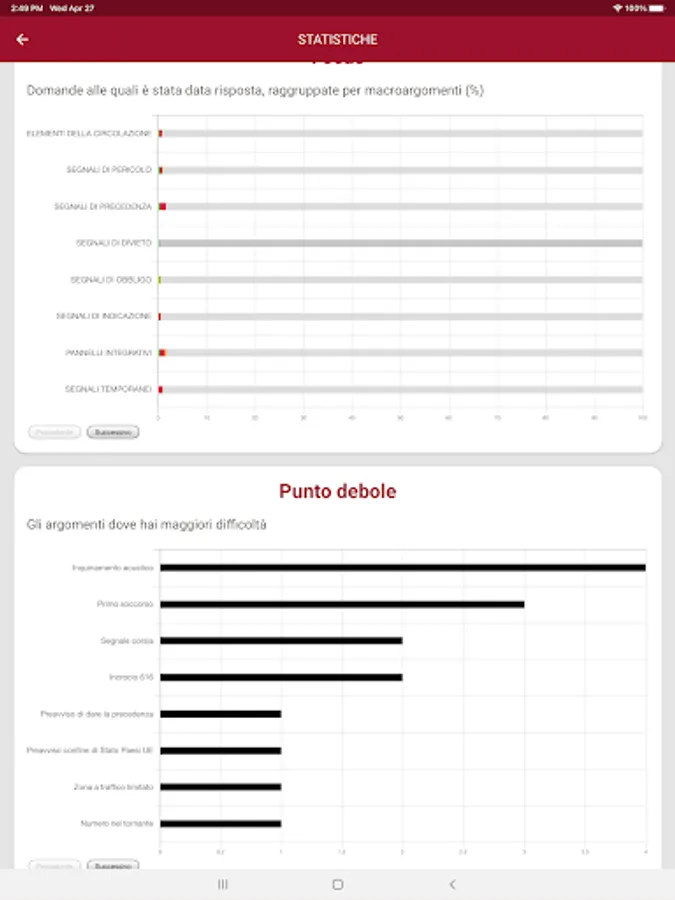 - Weak point: these are the questions you made wrong, and which are re-proposed to you for a review of the errors