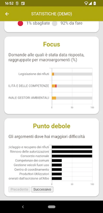 - Weak Point: these are the questions you made wrong, and which are re-proposed to you for a review of the mistakes