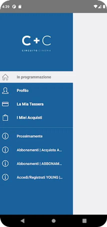 Mobile application for Circuito Cinema cinemas. The application allows you to consult the programming, buy and book tickets for the various shows.