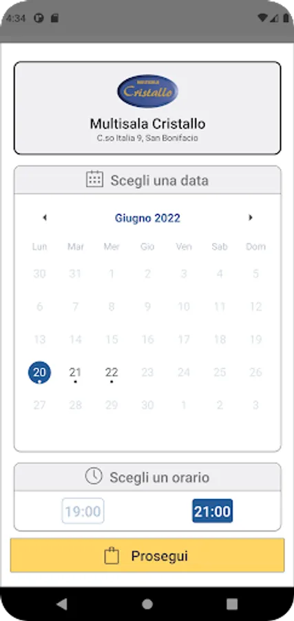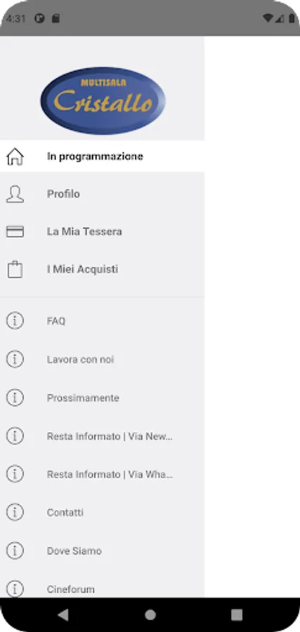 Mobile application for the Cristallo multiplex cinema. The application allows you to consult the programming, buy and book tickets for the various shows of the structure.