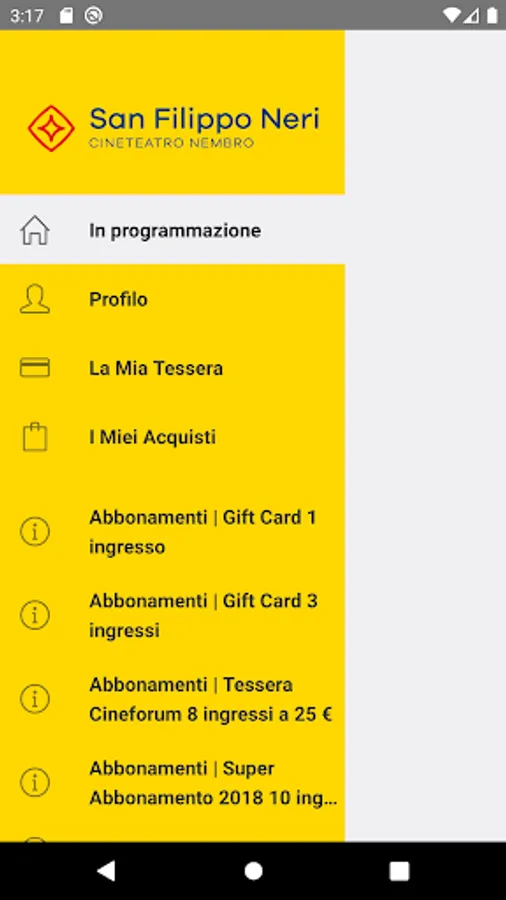 Mobile application for the Cineteatro S. Filippo Neri. The application allows you to consult the programming, buy and book tickets for the various shows.