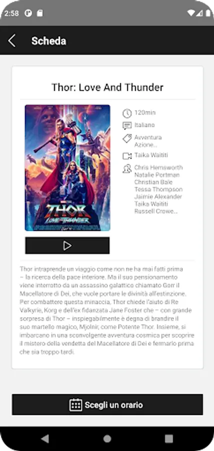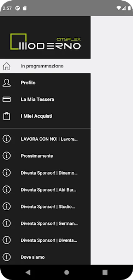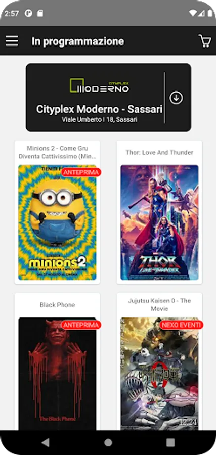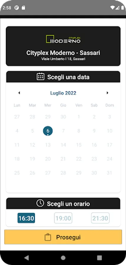 Mobile application for the Cityplex Moderno cinema in Sassari.