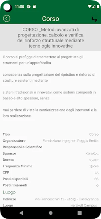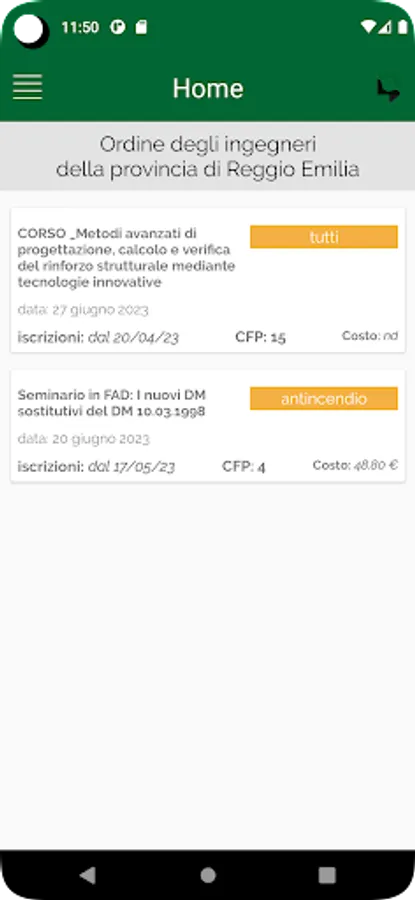 The app is dedicated to members of the Reggio Emilia Foundation of Engineers. It allows you to view the Foundation's news, consult the calendar of training activities and manage your course registrations. The app can also be used to present the code needed to track attendance at training activities.