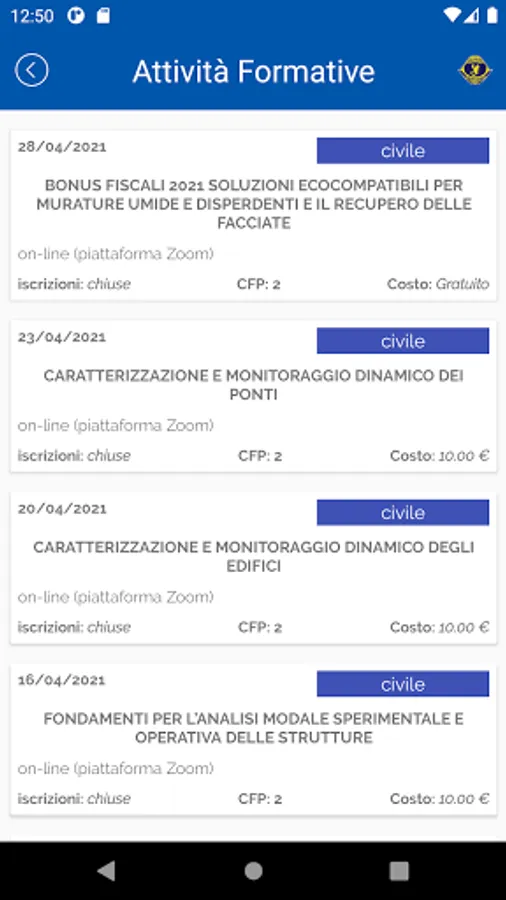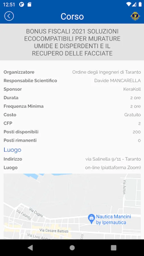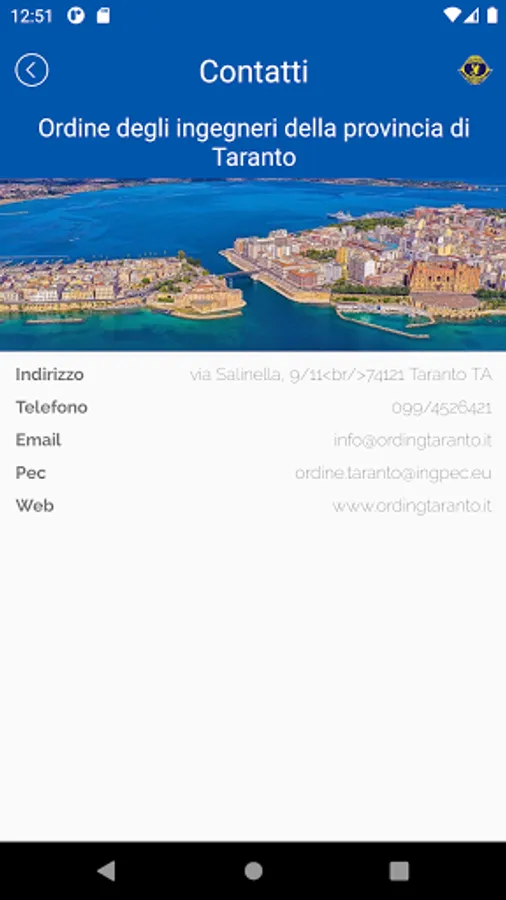 The app is dedicated to members of the Order of Engineers of Taranto. It allows you to view the news of the Order, consult the calendar of training activities and manage your course registrations. The app can also be used to present the code needed to track attendance at training activities.