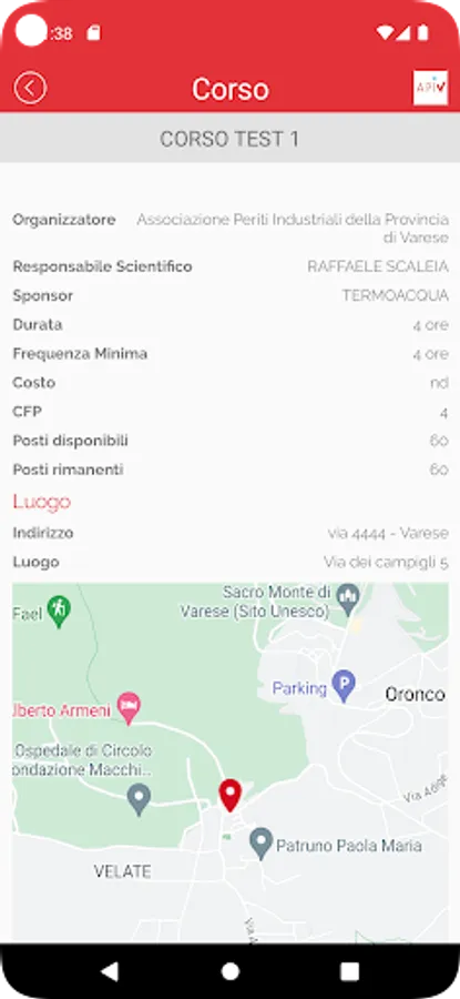 The app is dedicated to members of the Association of Industrial Experts of Varese. It allows you to view the Association's news, consult the calendar of training activities and manage your course registrations. The app can also be used to present the code needed to track attendance at training activities.