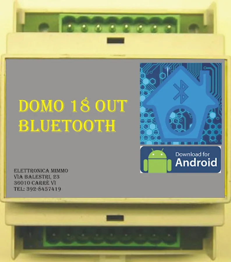 Domo 18 and out 'modular 4-seater with removable terminal block. Through bluetooth and 'possible to control the 18 outputs via smartphone. Each output and 'programmable using the same app. Each output can be set as: single, double and timer from 1 second to 255 hours. E 'can change the access code through any app serial bluetooth.