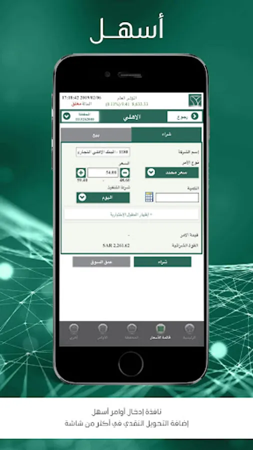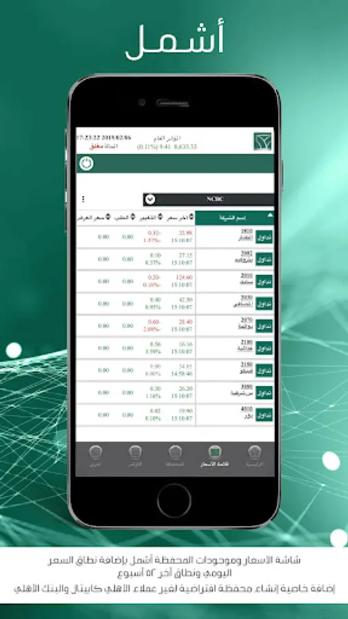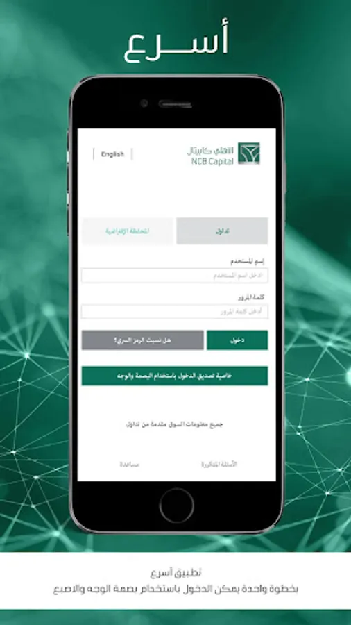 This application allows you to login to your account with NCB Capital using the same username and password you currently use on Al Ahli Tadawul,