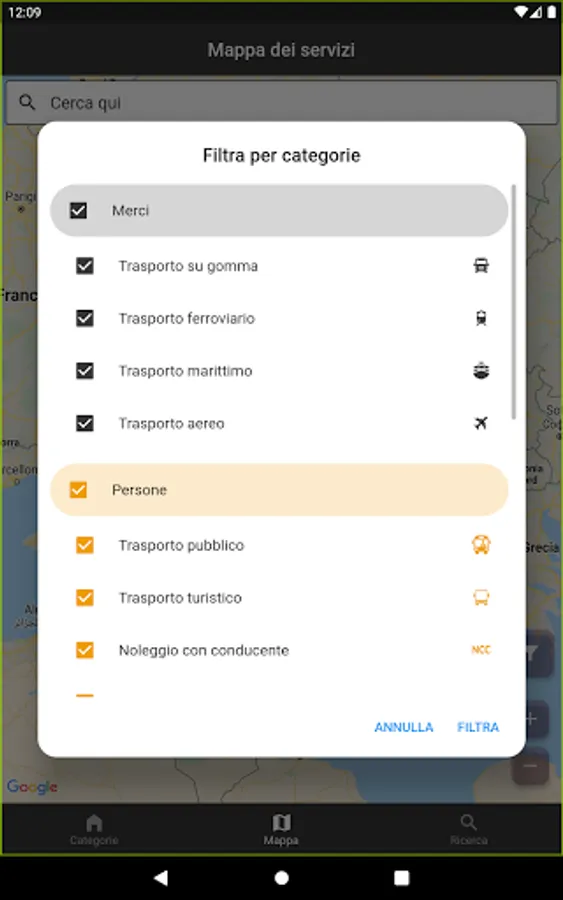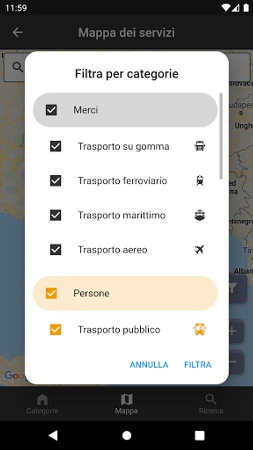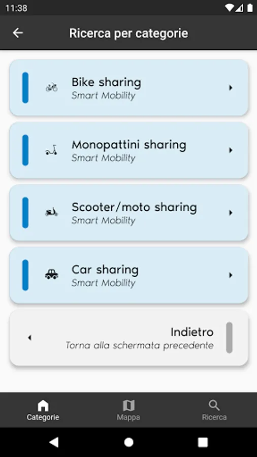 Private individuals, on the other hand, can take advantage of services relating to passenger transport (taxi, rental with driver, tourist transport, etc.) and smart mobility services (car sharing, carpooling, bike sharing, etc.). They can choose the category of interest and, based on their location, the App provides, in a few seconds, the closest company they want to contact.