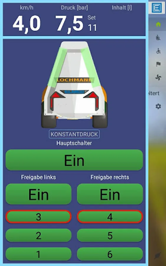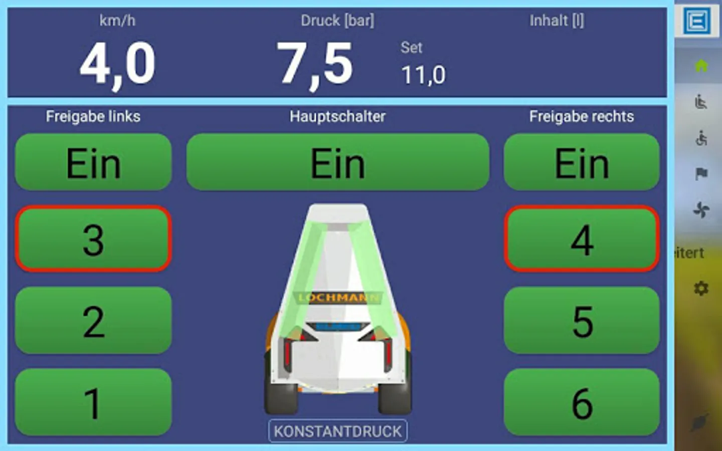Large, clear displays show the status of your sprayer and, in addition to the joystick, allow you to control the sprayer.