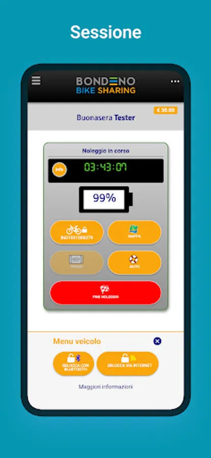 - Unlock the bike's electronic lock via Bluetooth during the rental;