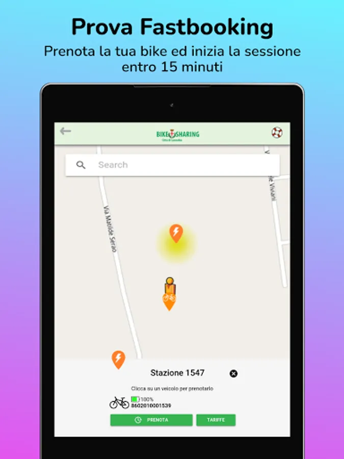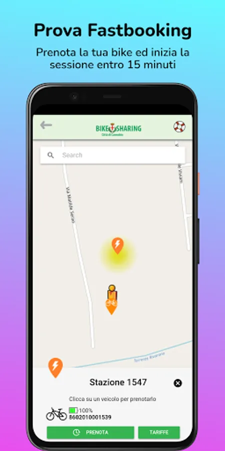 - Book a bike for 3 minutes with the Fastbooking service;