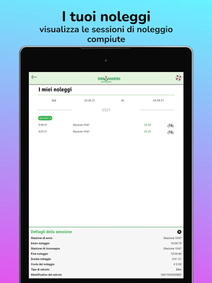 - End the rental session by delivering the bike to the allowed parking areas: just insert it in a Dock or, if they are not available, close the bike Lock and press the "End rental" button in the App;
