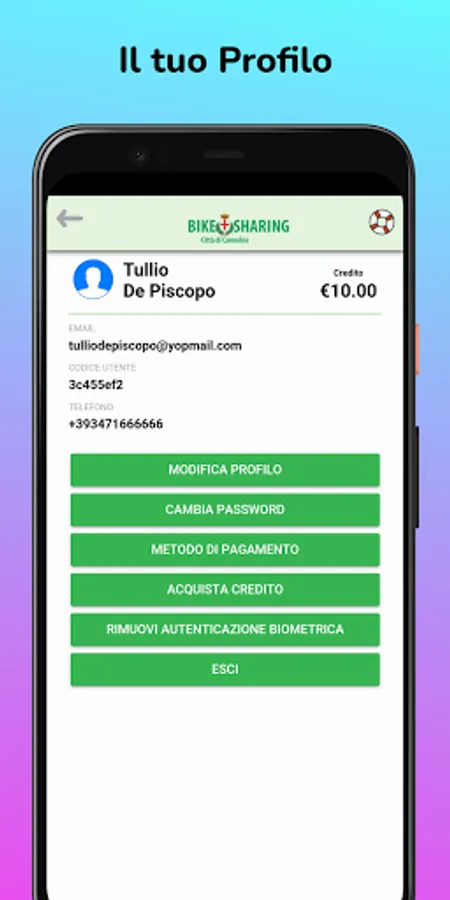 the official application of Bike Sharing Città di Cannobio in collaboration with Emoby.