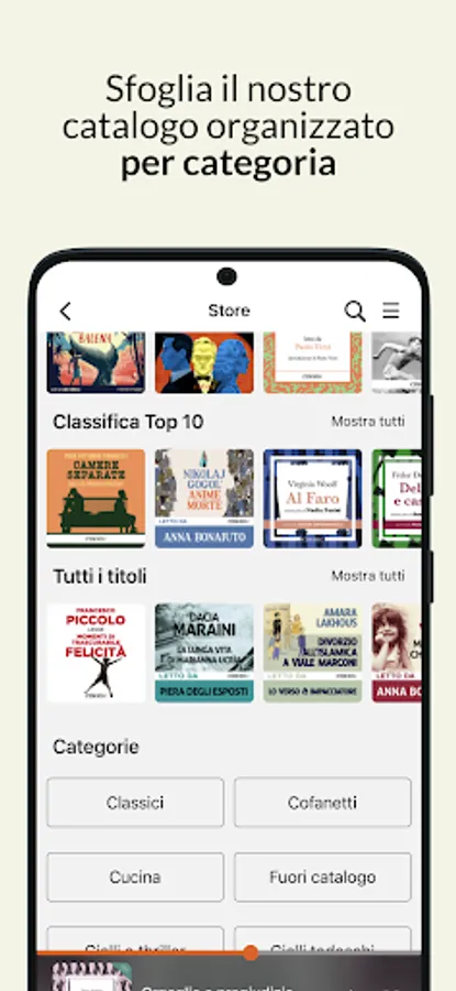• Browse the Emons catalogue, choose based on categories: fiction, classics, mysteries and thrillers, essays, children