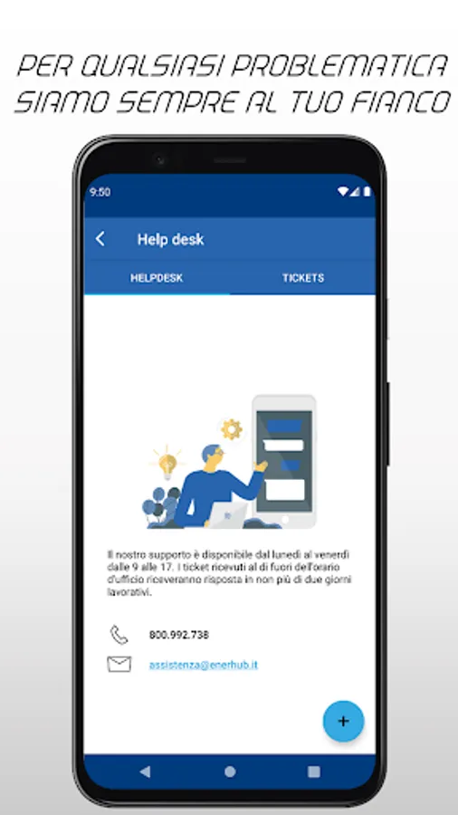 • contact the Enerhub assistance center available 24 hours a day and 7 days a week directly from the App.