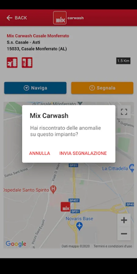 Car wash from the card, you can view its location on the map and start browsing capabilities.