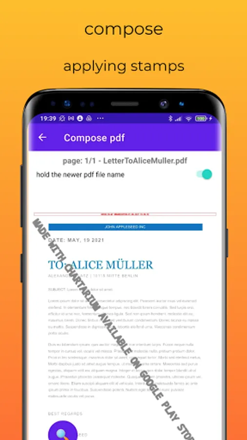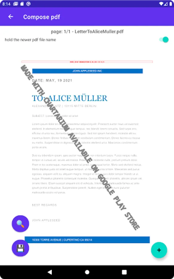 Buy Chartarium and You will be able to customise Your document stamps with the name of Your Organisation, You will have no more watermarks, no more headache. Buy it once and use it forever, with no subscriptions!