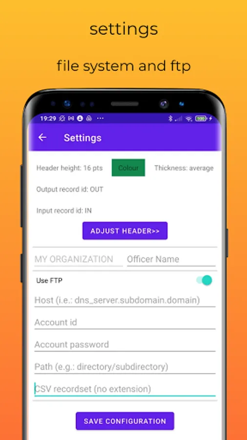 It works with any FTP Server, local disk or Google drive. Due to the characteristics of the O.S. Android, FTP is recommended.
