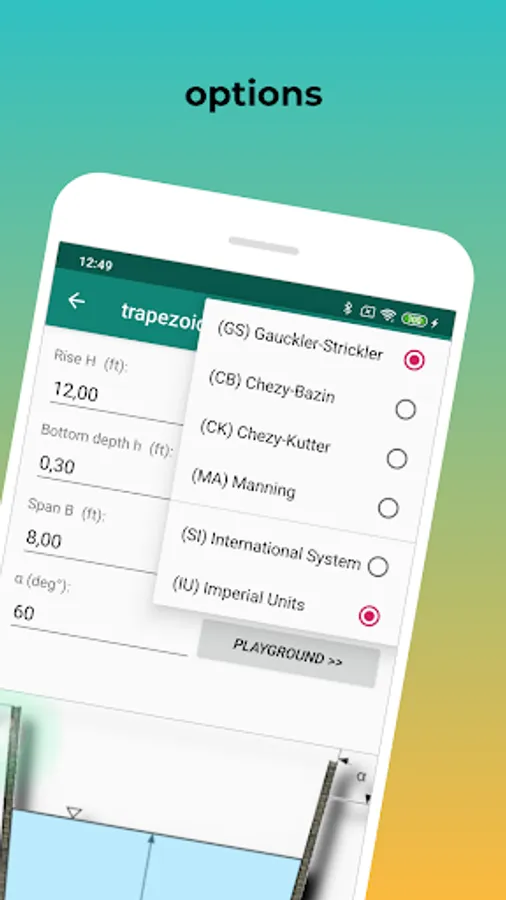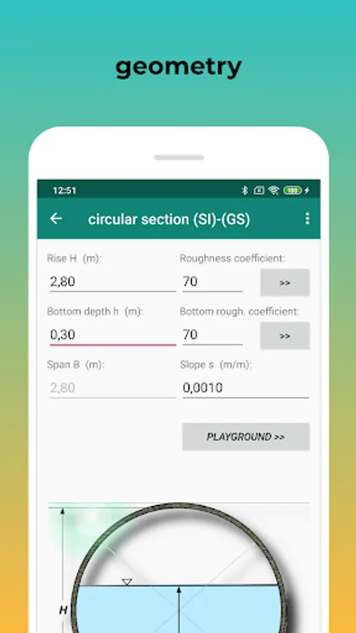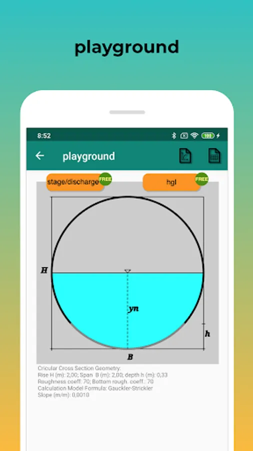 The iDrawlix® Playground allows Users approaching design and verification of partially full conduits or open channels flow problems to immediately experiment what happens to their project at any change in the settings, without the burden of building complex ad hoc models in order to get graphics and tables out of it.