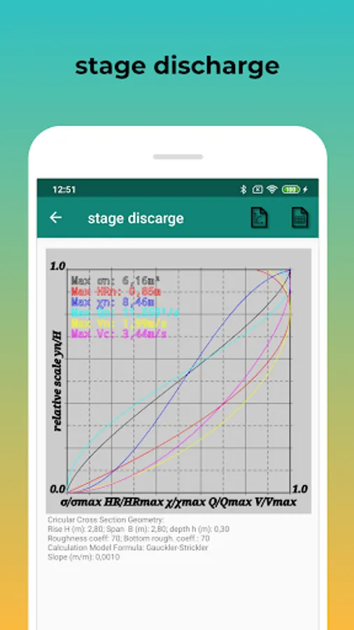 One of the main output of iDrawlix® Mobile Free is the Stage-Discharge curve of the current Cross Section.