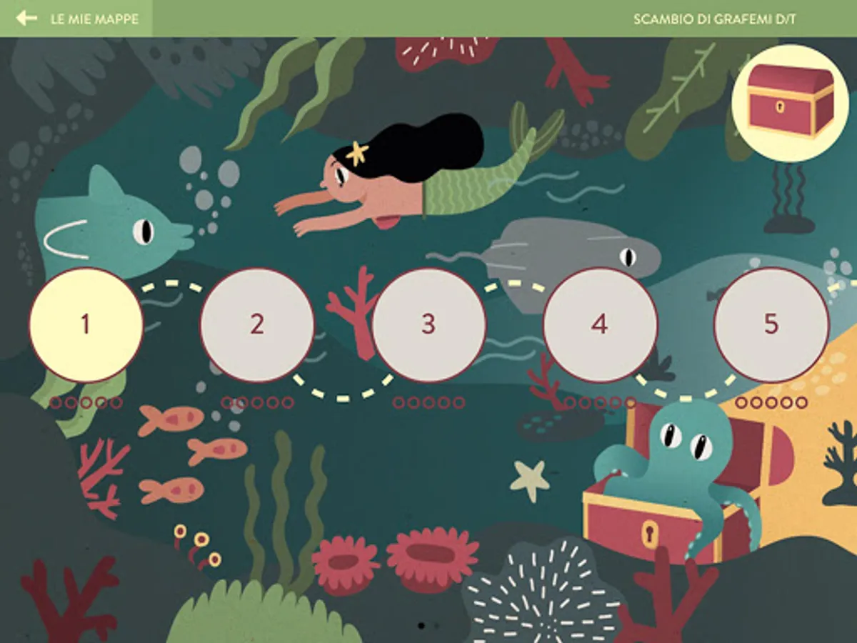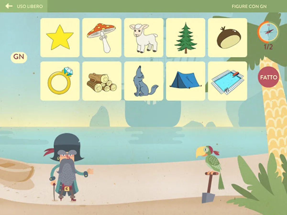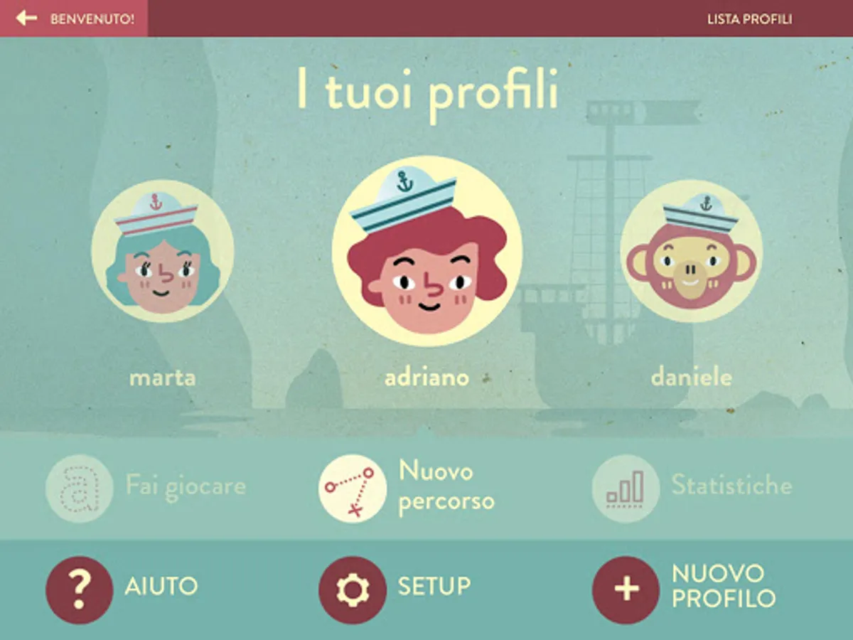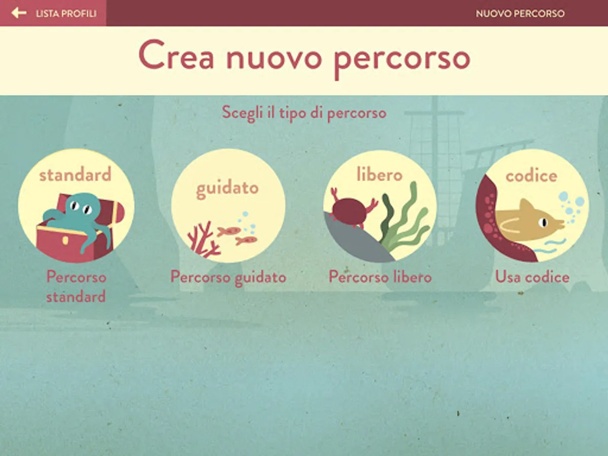 The program offers the opportunity to choose courses already structured by topic, or to personalize the teaching proposal creating the path according to the specific needs of the student. Under the guidance of a cute pirate, the baby will address the activities set in a fun treasure hunt.