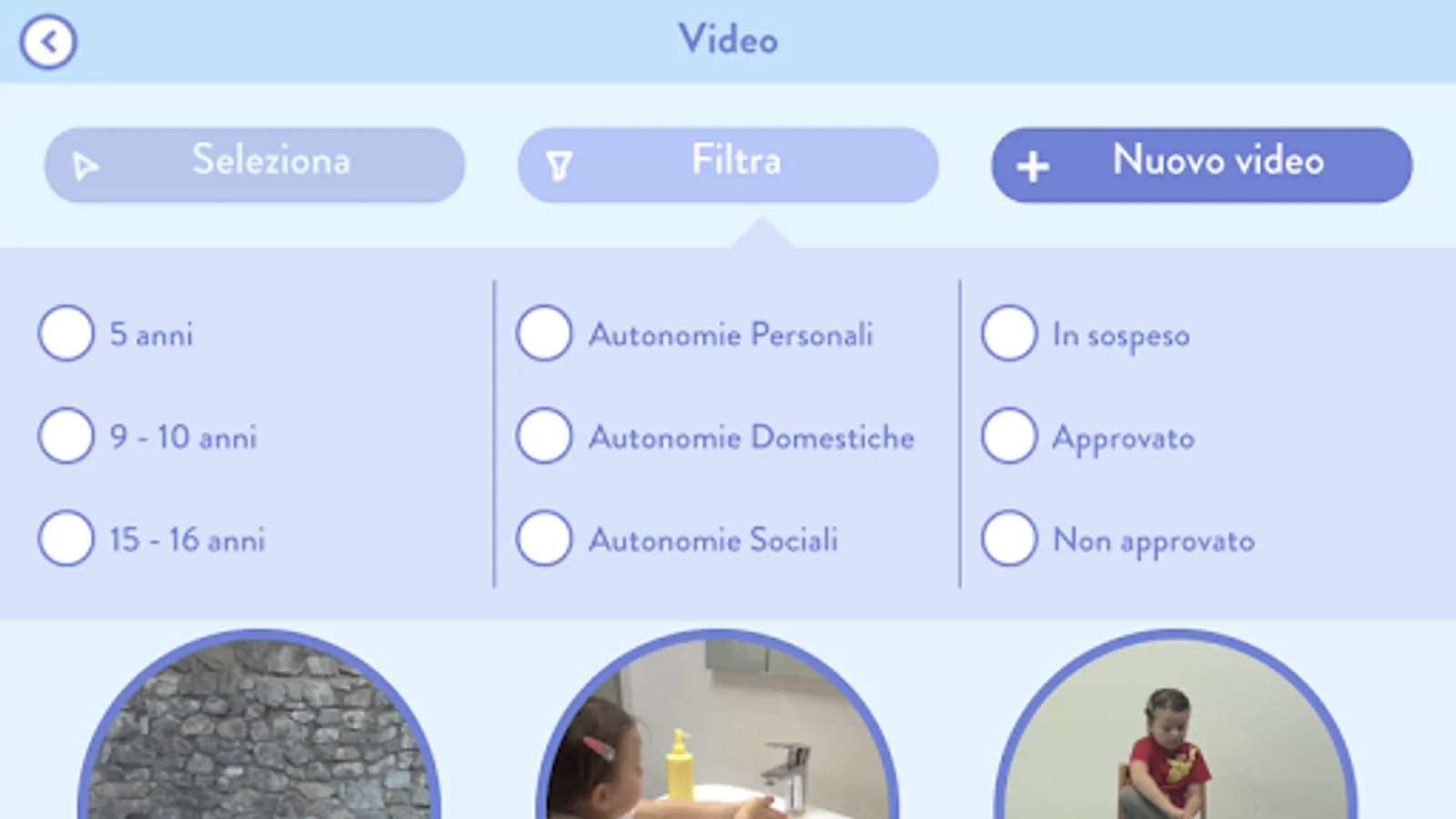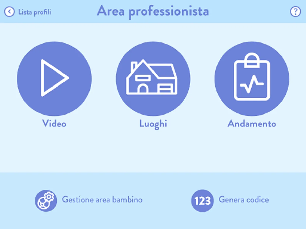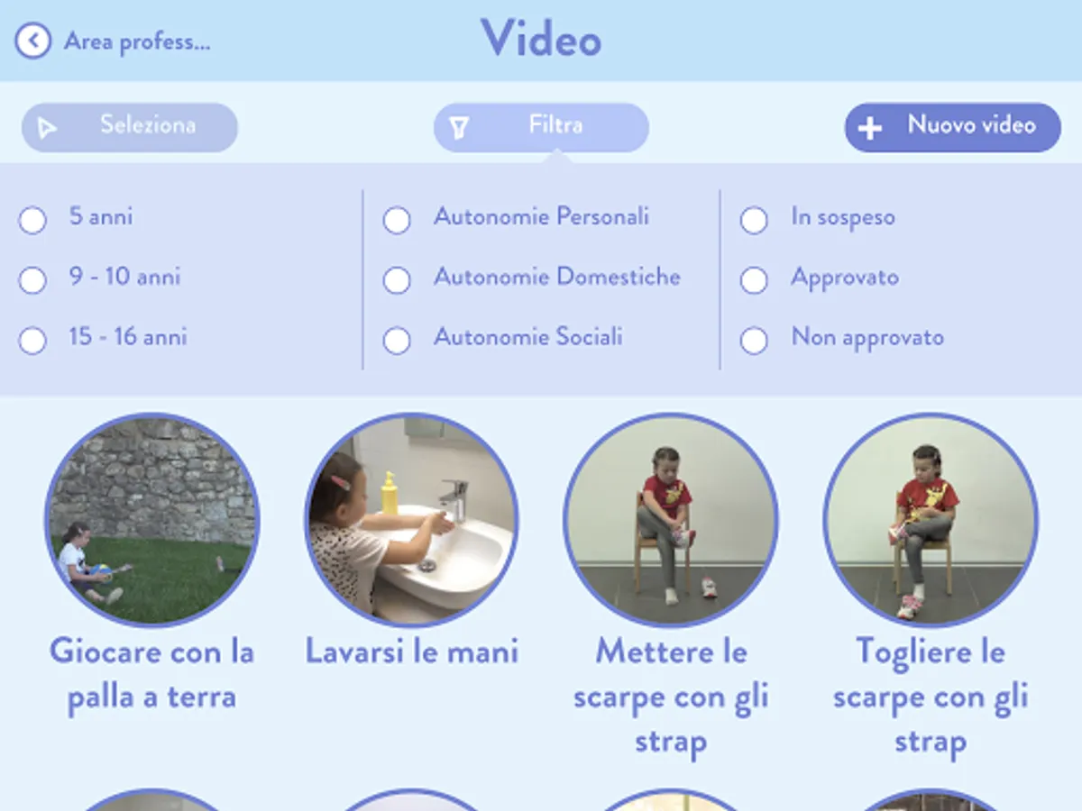 The software as a whole aims to create a structured connection between family and professional, taking advantage of the power of video to guide children towards a greater degree of autonomy in small daily actions.