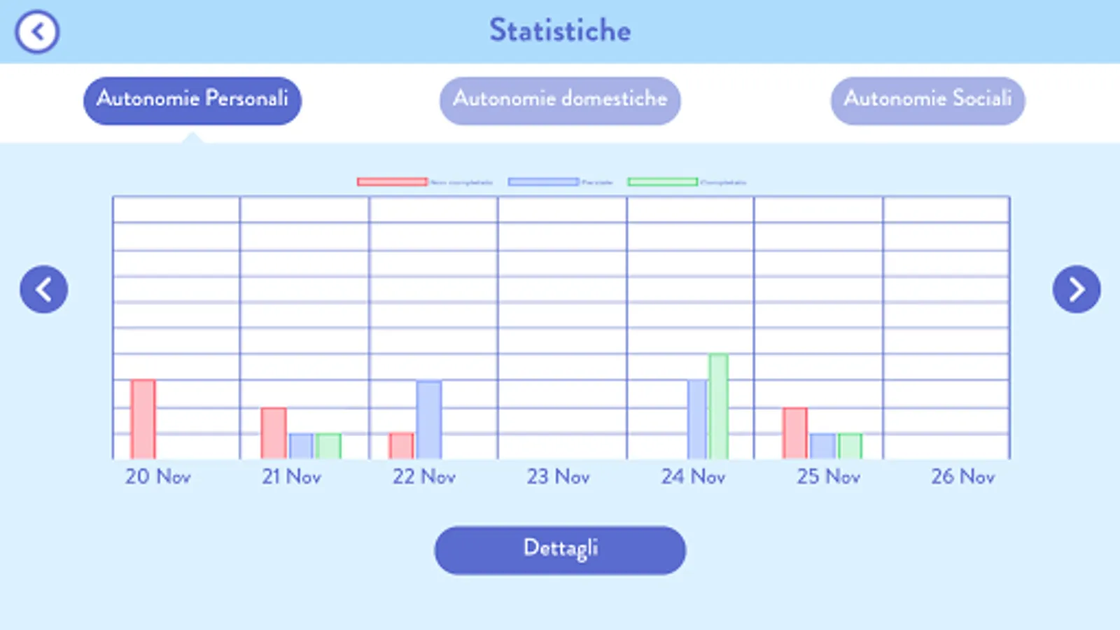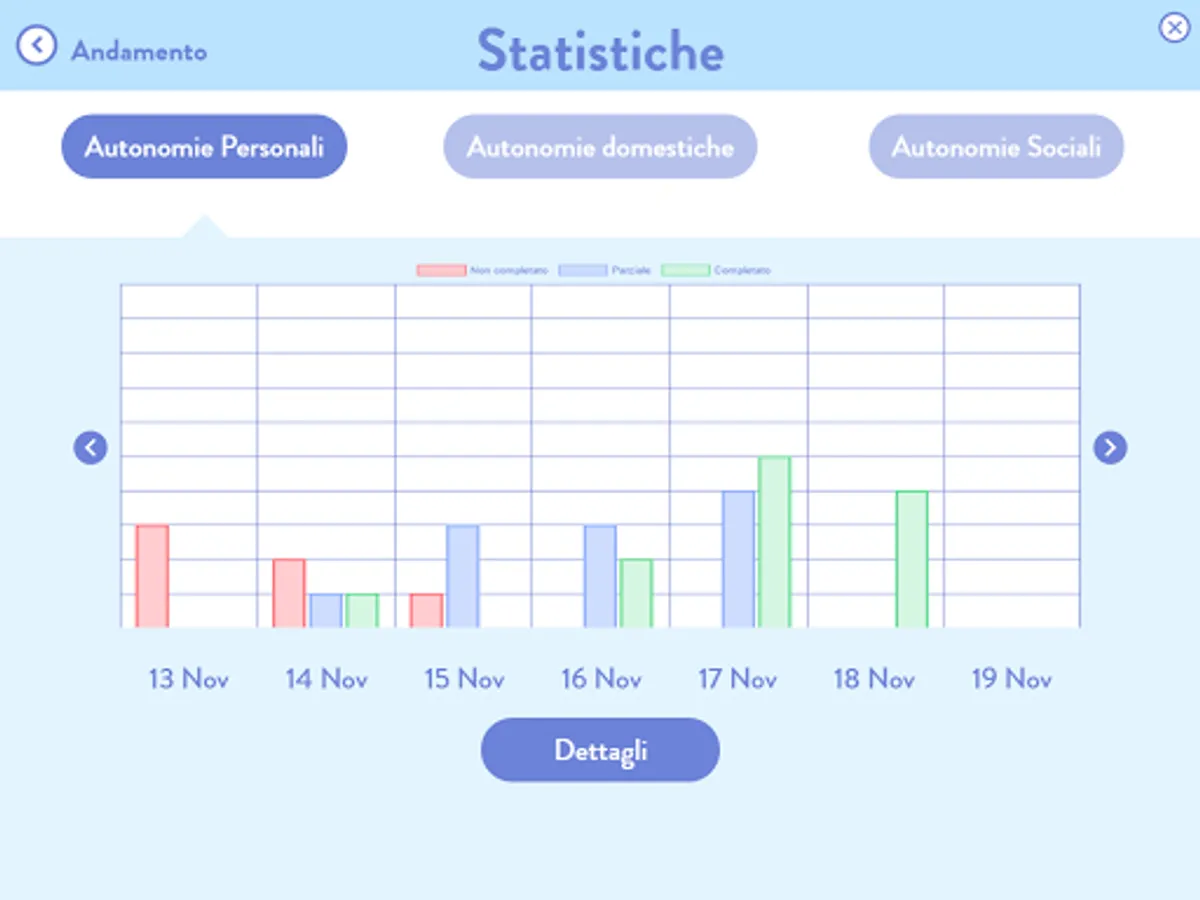 • statistics: graphs that visually returns the progress of the autonomies acquisitions.