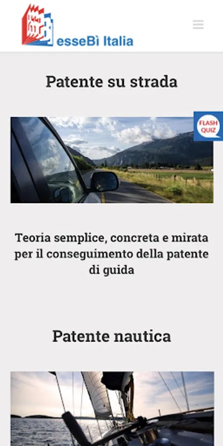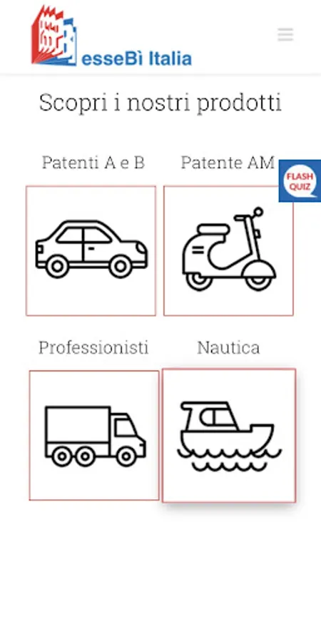 Product catalog, manuals, courses, quizzes and news on the world of road and water transport. Practice the flash quizzes dedicated to the A / B, AM, C, D and nautical licenses.