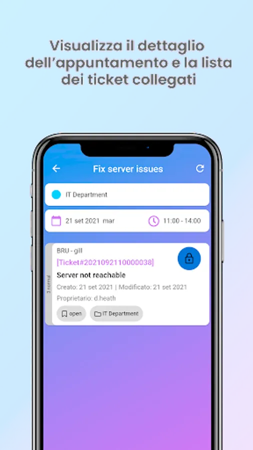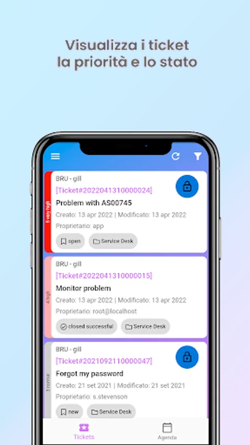 - for each ticket: see the subject, customer, status, owner, creation date and last modification, if it is locked